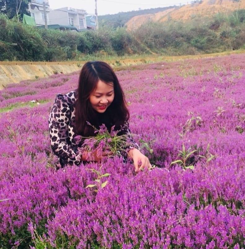 Cô gái mặc váy hoa xúng xính trên đồi