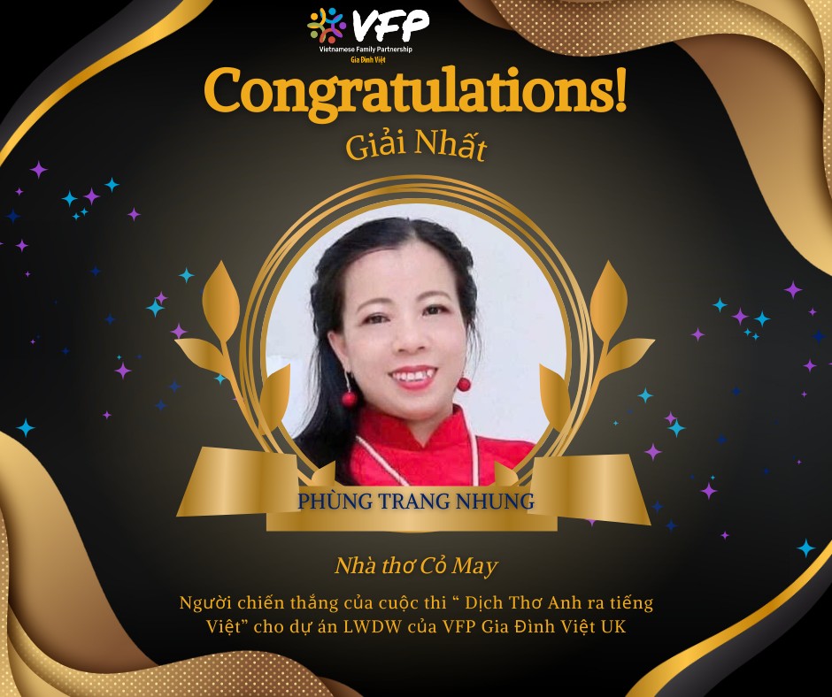 Cuộc thi Dịch thơ Anh ra tiếng Việt do Hội Gia đình Việt Nam (VFP) tổ chức, là một sự kiện bên lề Dự án Living Well, Dying Well (Sống an yên, chết thanh thản) của trường Đại học Westminster (Vương quốc Anh). Đây là dự án quy tụ đại diện cộng đồng Việt Nam, Bồ Đào Nha, Caribbean, Nam Á, châu Phi và nhiều cá nhân tham gia, tạo nên một không gian đa văn hóa, đầy cảm xúc và thấu hiểu; với mục đích xây dựng dịch vụ chăm sóc cuối đời nhân văn, phù hợp với từng cộng đồng tại Anh.