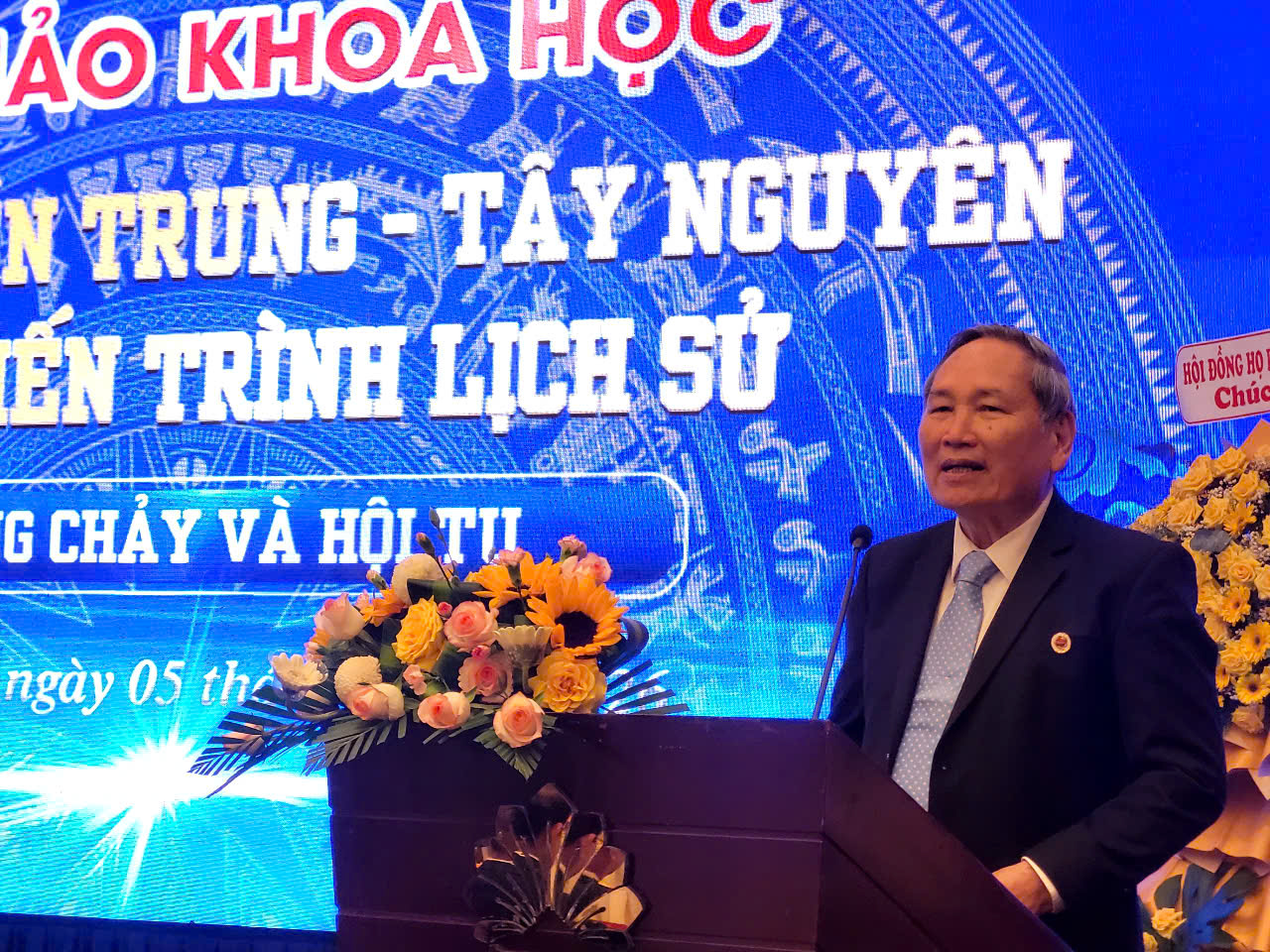 TS Lê Anh, Trưởng tộc họ Lê tại TP. Đà Nẵng tham gia phát biểu tại Hội thảo